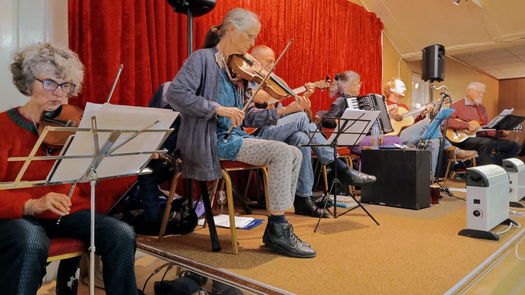 A good evening with local musicians – Folk Salad – beginning with a workshop for dance despite Covid causing cancellation of the musicians’ workshop.
